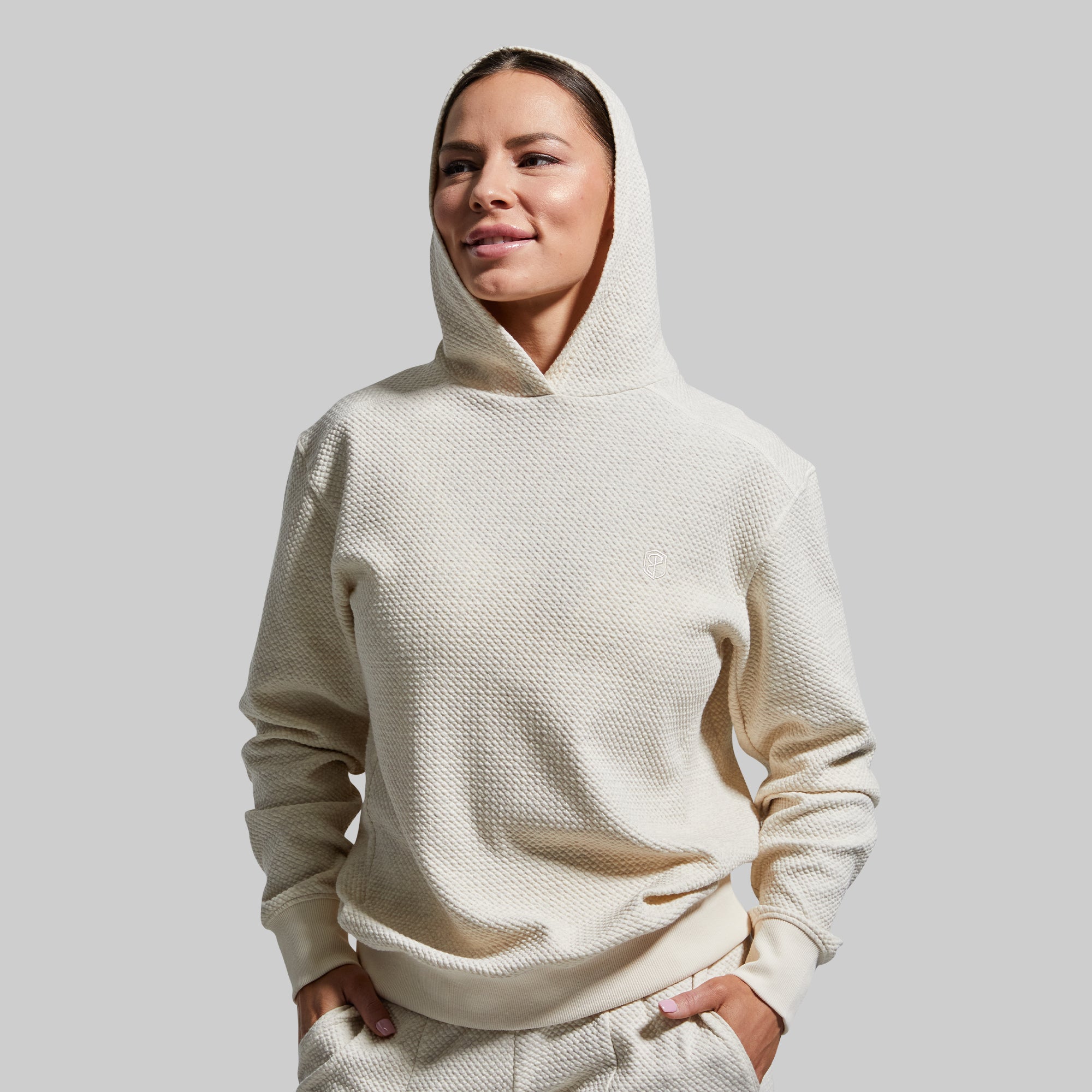 Designed for hard-earned recovery days. the Women’s Cloud Hoodie delivers the ultimate in lounge-ready comfort. Made from a soft. textured cotton blend with added stretch. it moves with you while keeping you cozy. The medium-weight fabric is perfect for year-round wear. and the relaxed hood adds an extra layer of comfort.