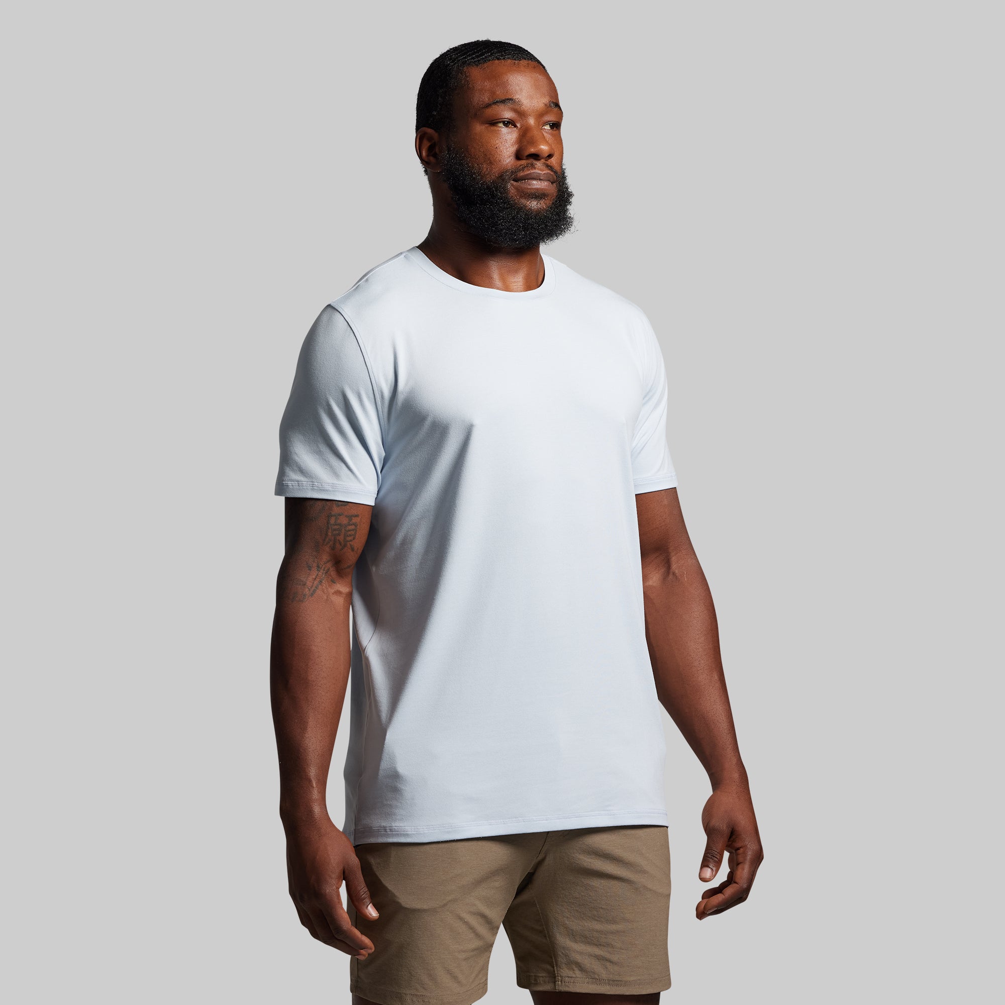 Your most reached-for closet staple just received a major upgrade. Built from a buttery-soft performance stretch fabric. our BP Premium Basic Crew is unlike any basic men’s crew neck t-shirt you’ve tried before. Cut with athletic builds in mind. this tee is designed to fit muscular arms. chests. and shoulders without restricting your movement. Pair it with your favorite jeans for a backyard hang with the guys or throw it on with gym shorts for an evening lift session.