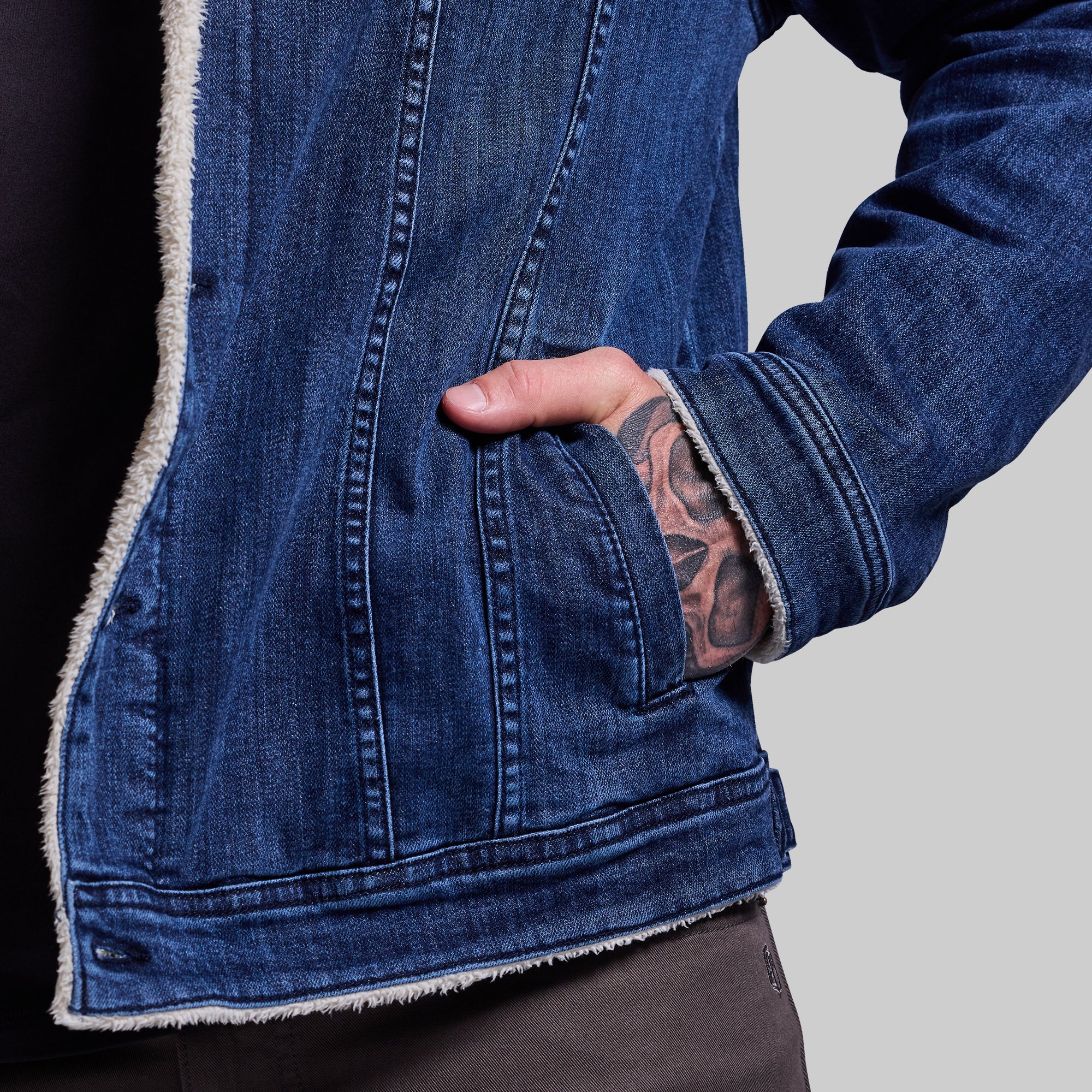 Our FLEX Stretchy Pioneer Jacket 2.0 combines the look of a classic denim jacket with an ultra-soft sherpa lining for added warmth. Added stretch prevents binding at the shoulders and allows for full freedom of movement. The snap closure front and two chest pockets complete the refined look. Designed to go anywhere your day takes you. this jacket is perfect for chilly outings.