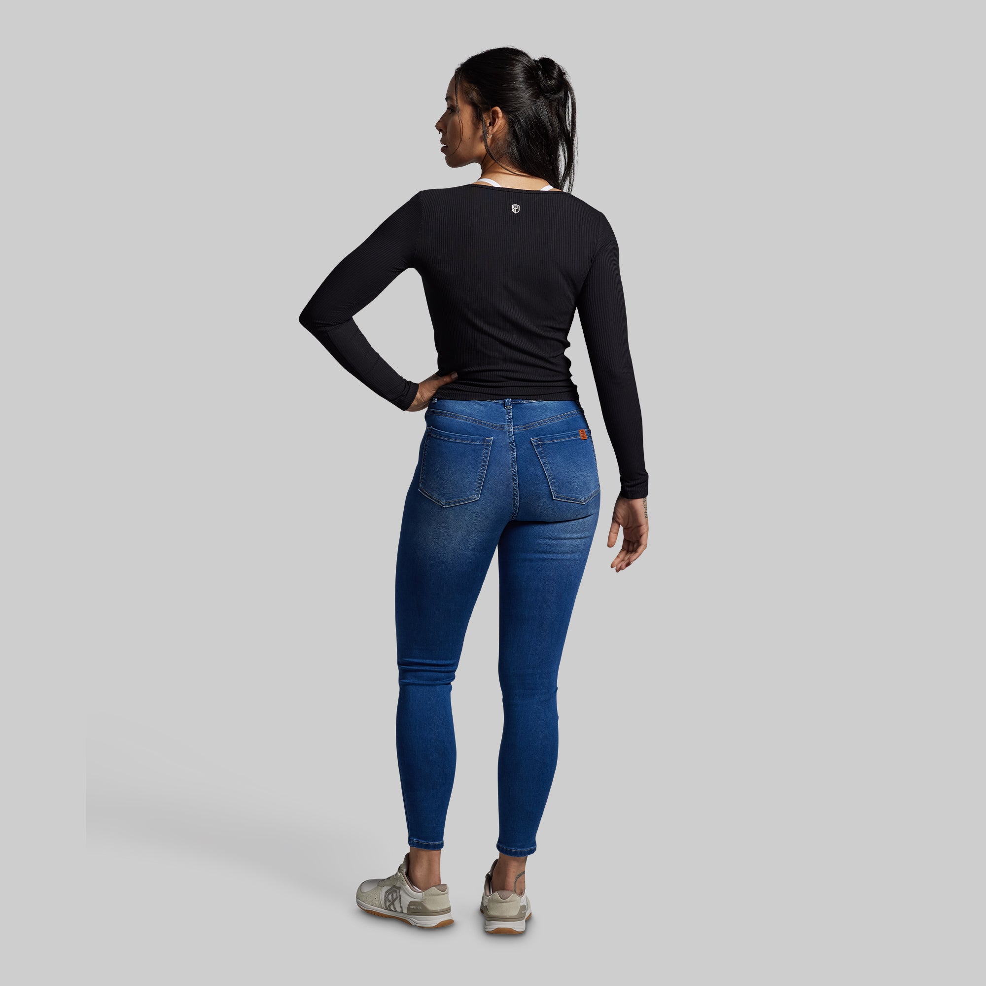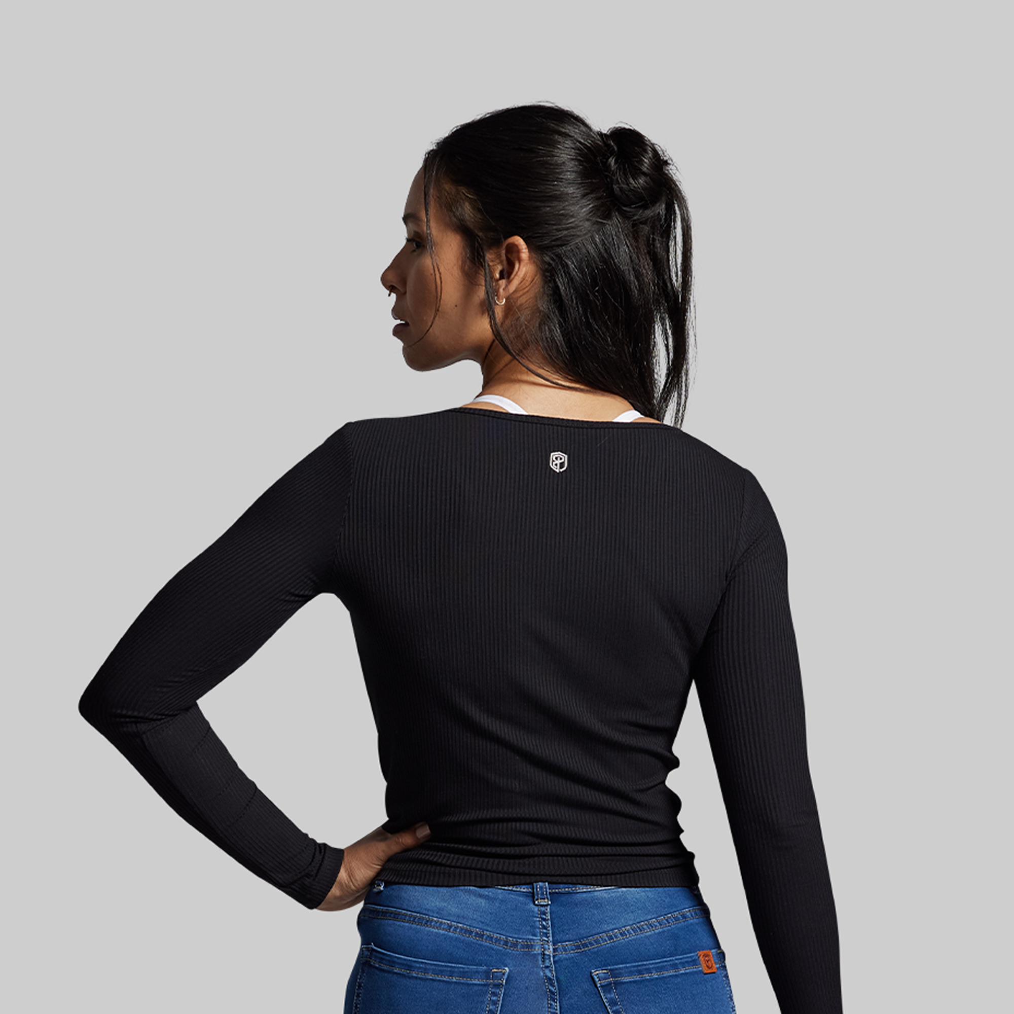 Made with a premium shadow rib fabric. our Rise Up Long Sleeve pairs just as well with leggings as it does your favorite pair of jeans. Finished with front ruching for a feminine touch. this top will quickly become a favorite for morning coffee runs. mobility warmups. and everyday wear.