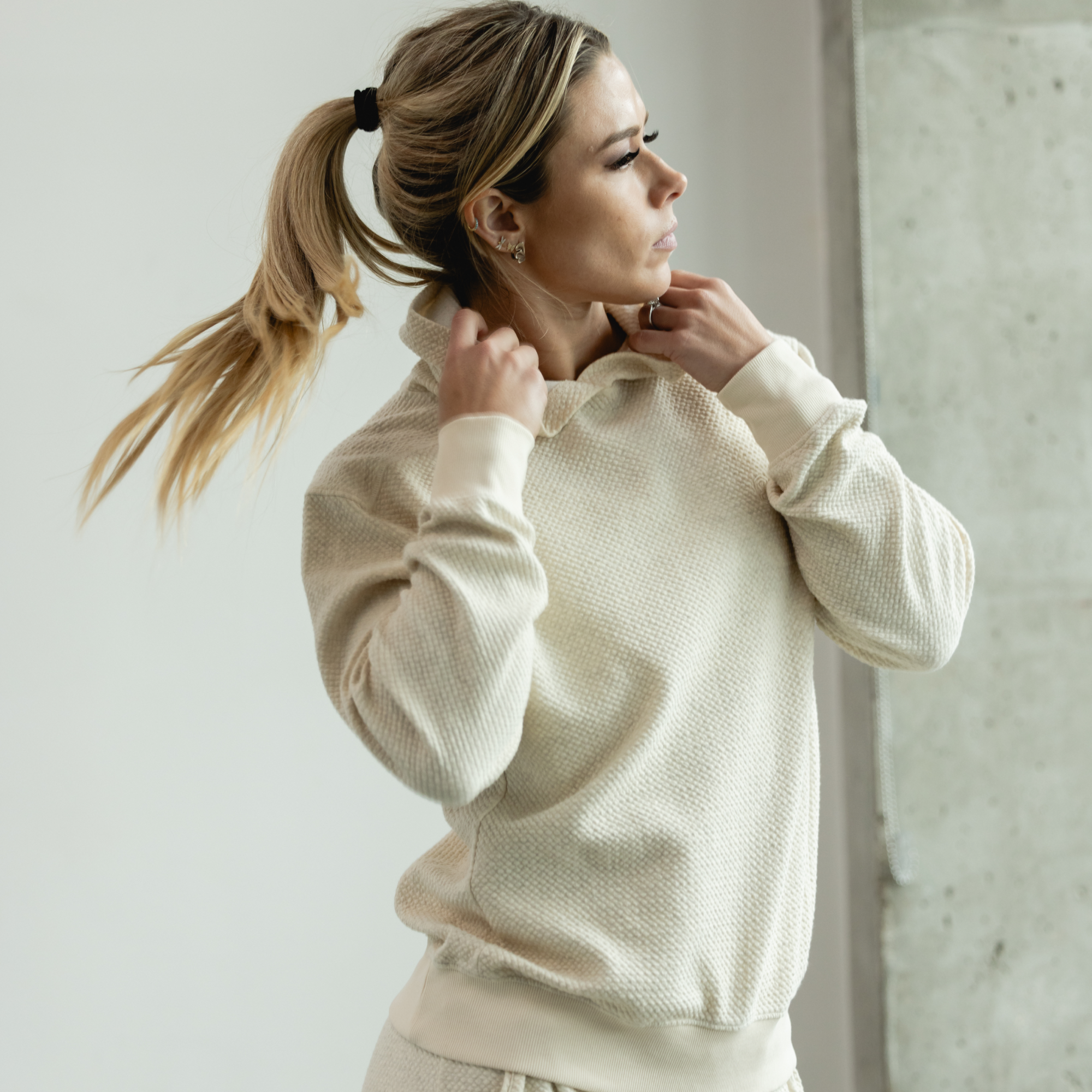 Designed for hard-earned recovery days. the Women’s Cloud Hoodie delivers the ultimate in lounge-ready comfort. Made from a soft. textured cotton blend with added stretch. it moves with you while keeping you cozy. The medium-weight fabric is perfect for year-round wear. and the relaxed hood adds an extra layer of comfort.